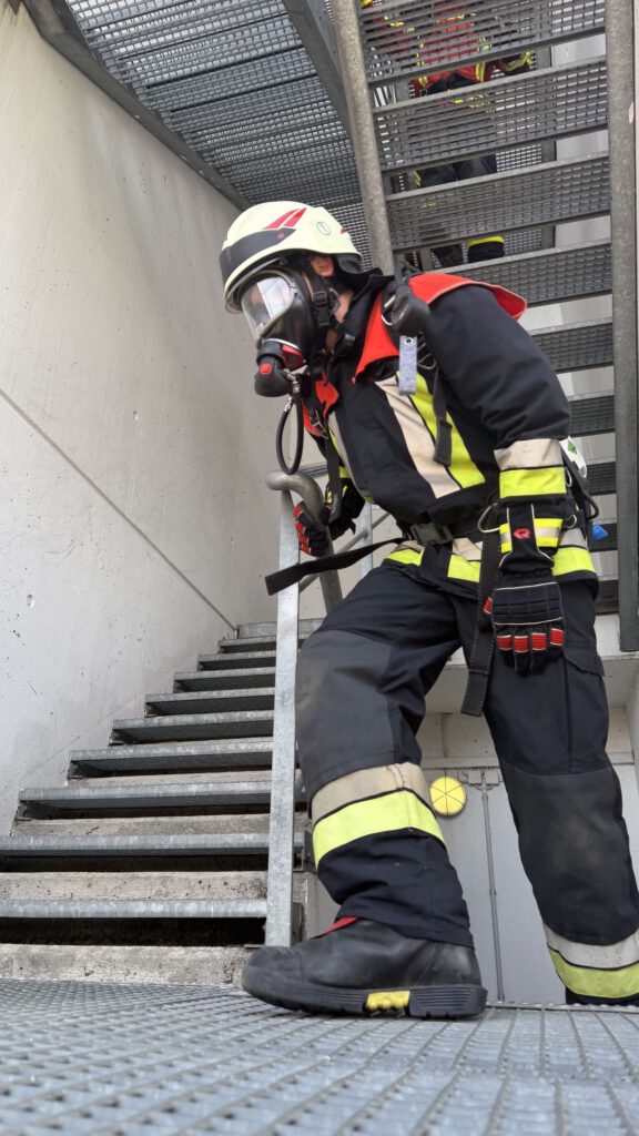 Atemschutzgeräteträgern werden in verschiedenen Einsatzszenarien körperliche Höchstleistungen abverlangt. Zusätzlich zu diesen Herausforderungen hat sich eine kleine Gruppe von uns etwas Besonderes vorgenommen. Zum ersten Mal nahmen wir an einem Turmlauf bzw. Firefighter Stairrun teil. Bei diesem Wettkampf geht es, wie der Name vermuten lässt, darum, in möglichst kurzer Zeit Treppenstufen unter Atemschutz und in voller Einsatzkleidung zu laufen.