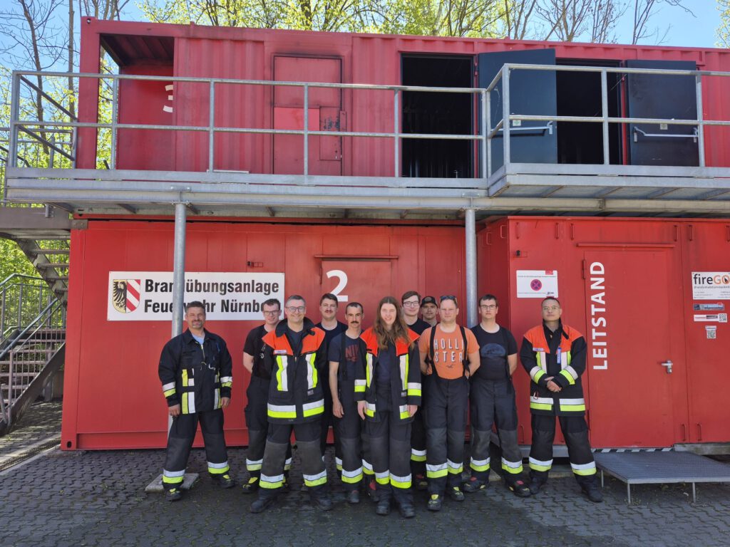 Am heutigen Samstag hatten zehn unserer Kameradinnen und Kameraden die Möglichkeit, unter Anleitung zweier Ausbilder der Berufsfeuerwehr, die Brandübungsanlage in Nürnberg zu nutzen.